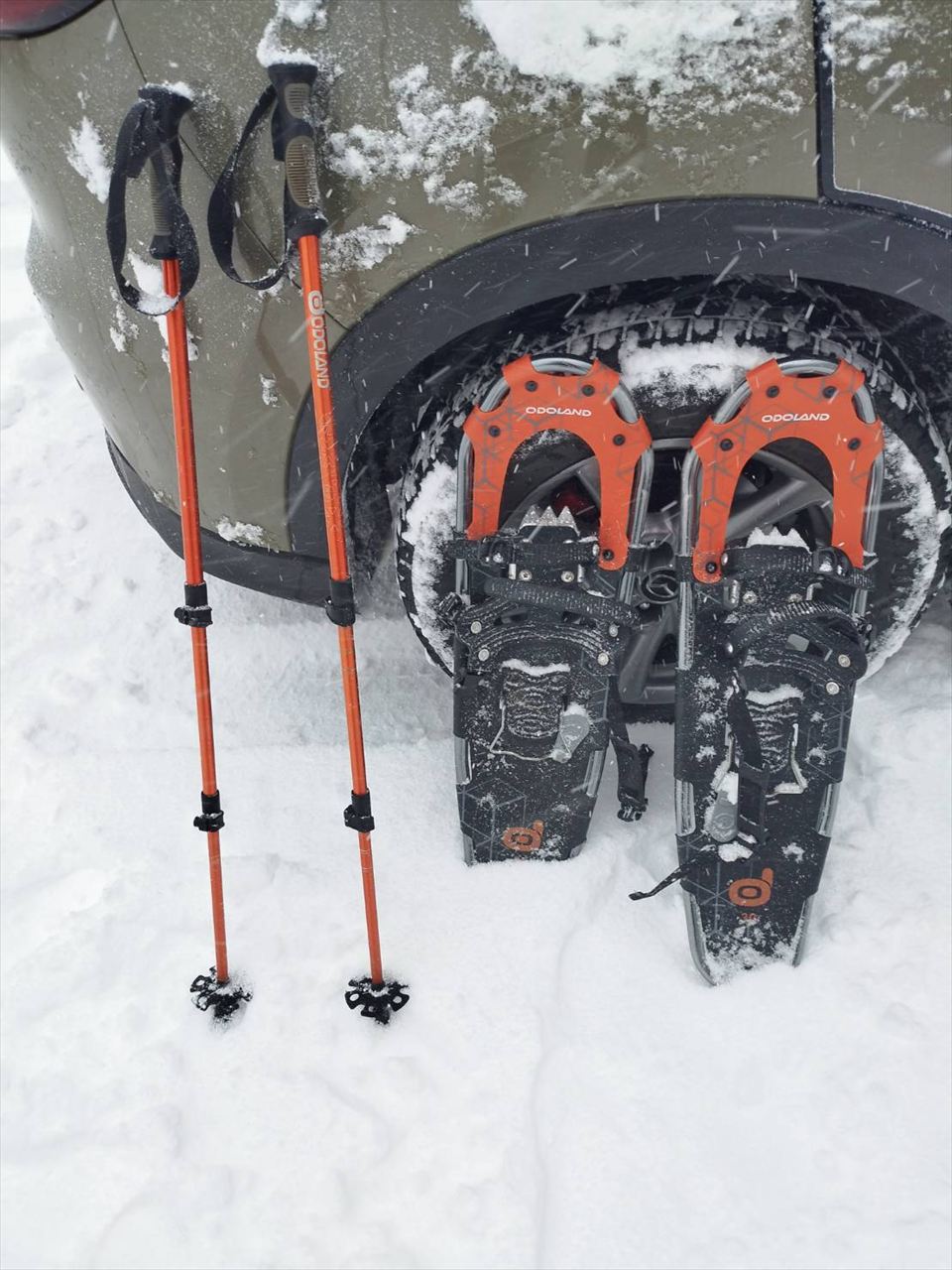 スノーシューは西洋カンジキの事で、パウダースノーの上もそこまで深く沈まずに歩くことが出来ます。