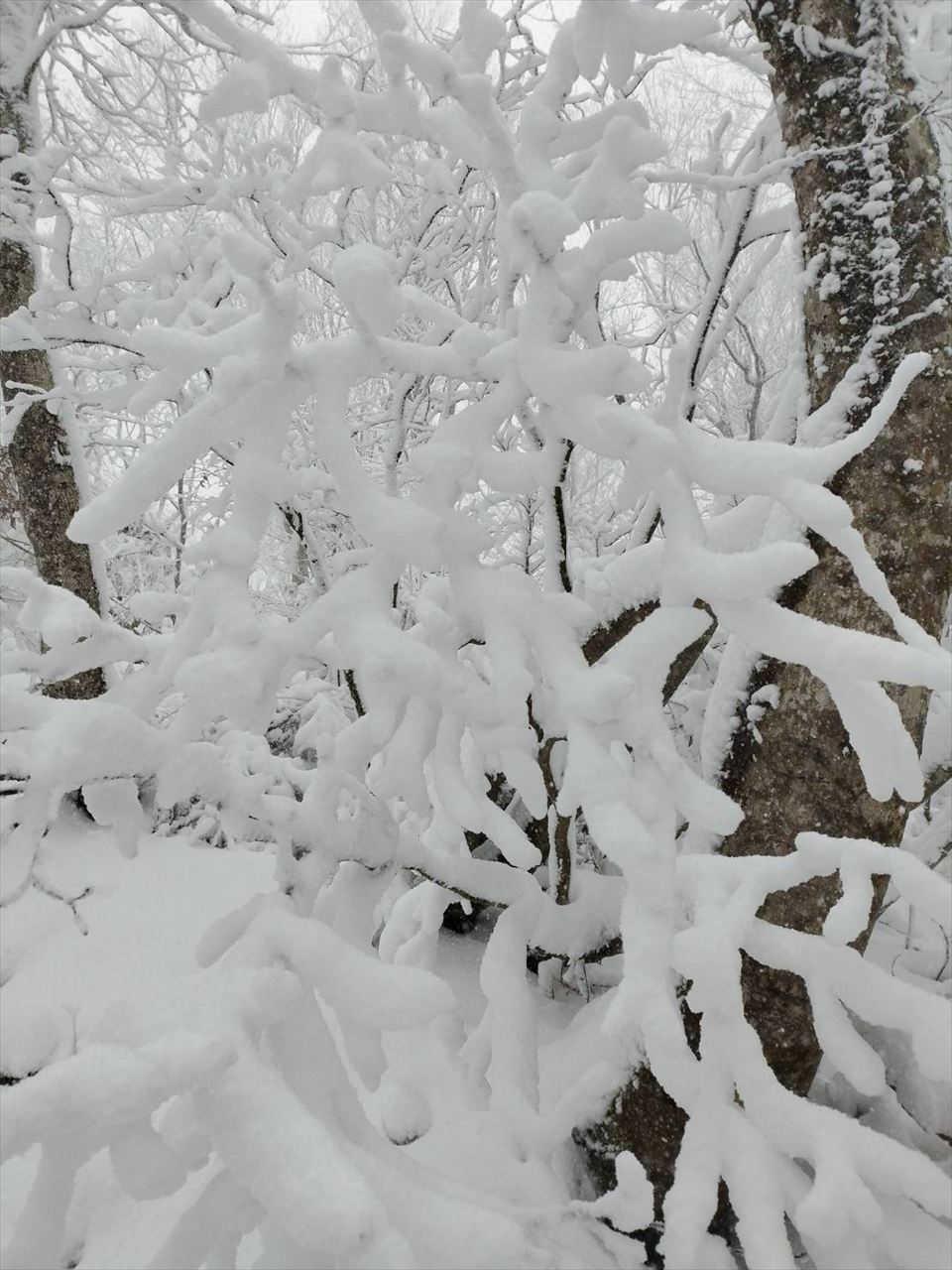 木枝に雪が積もり、まさに小枝状態です。