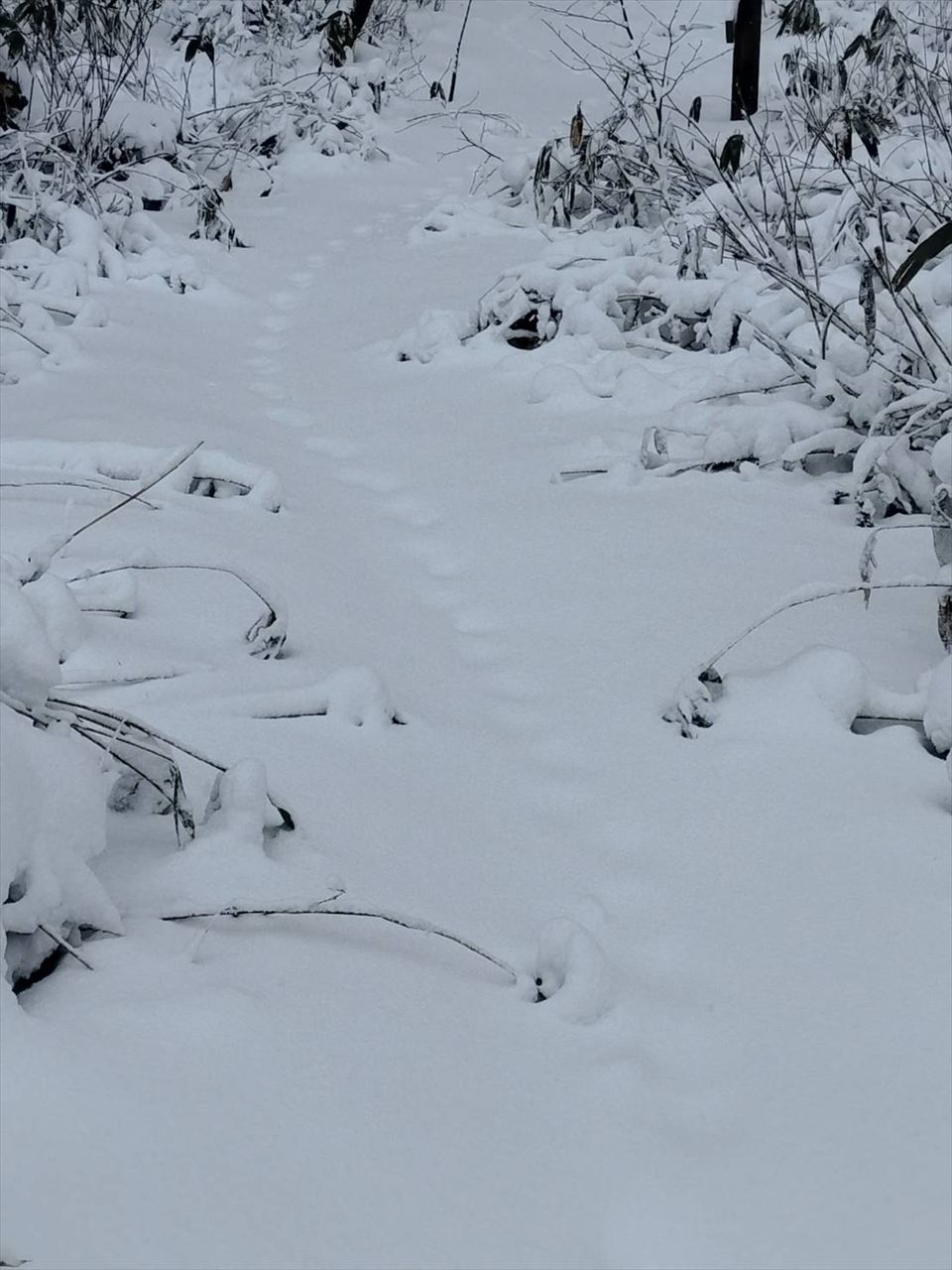 梵珠山山頂から隣の釈迦堂山へスライド、途中でなんでしょうかね?動物の足跡が。