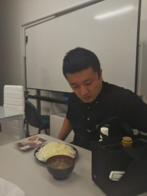 左手に味噌汁を置き・・・